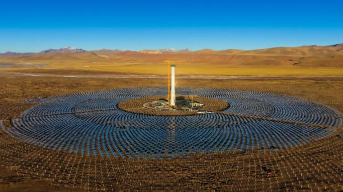 15日上午,西藏開(kāi)投集團投資建設的全球海拔最高、西藏首個(gè)塔式光熱電站——西藏開(kāi)投安多土碩100MW光熱+800MW光伏一體化項目吸熱塔順利結頂。吸熱塔從破土動(dòng)工到主體完工僅用233天,創(chuàng )下同期同類(lèi)型項目結頂最快紀錄。
