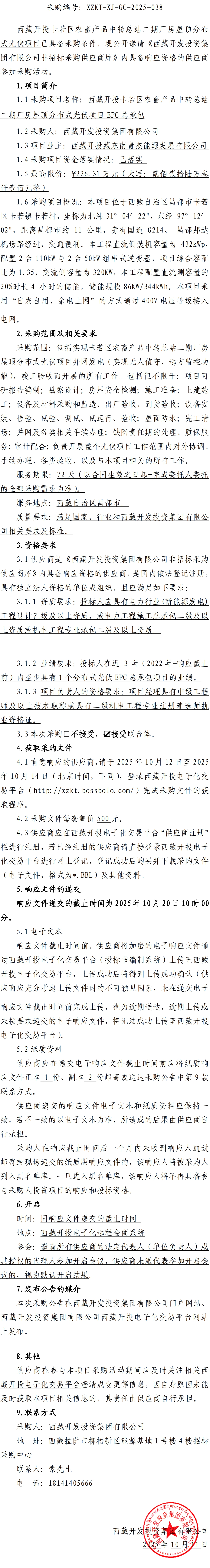 西藏開(kāi)投卡若區農畜產(chǎn)品中轉總站二期廠(chǎng)房屋頂分布式光伏項目詢(xún)比采購公告
